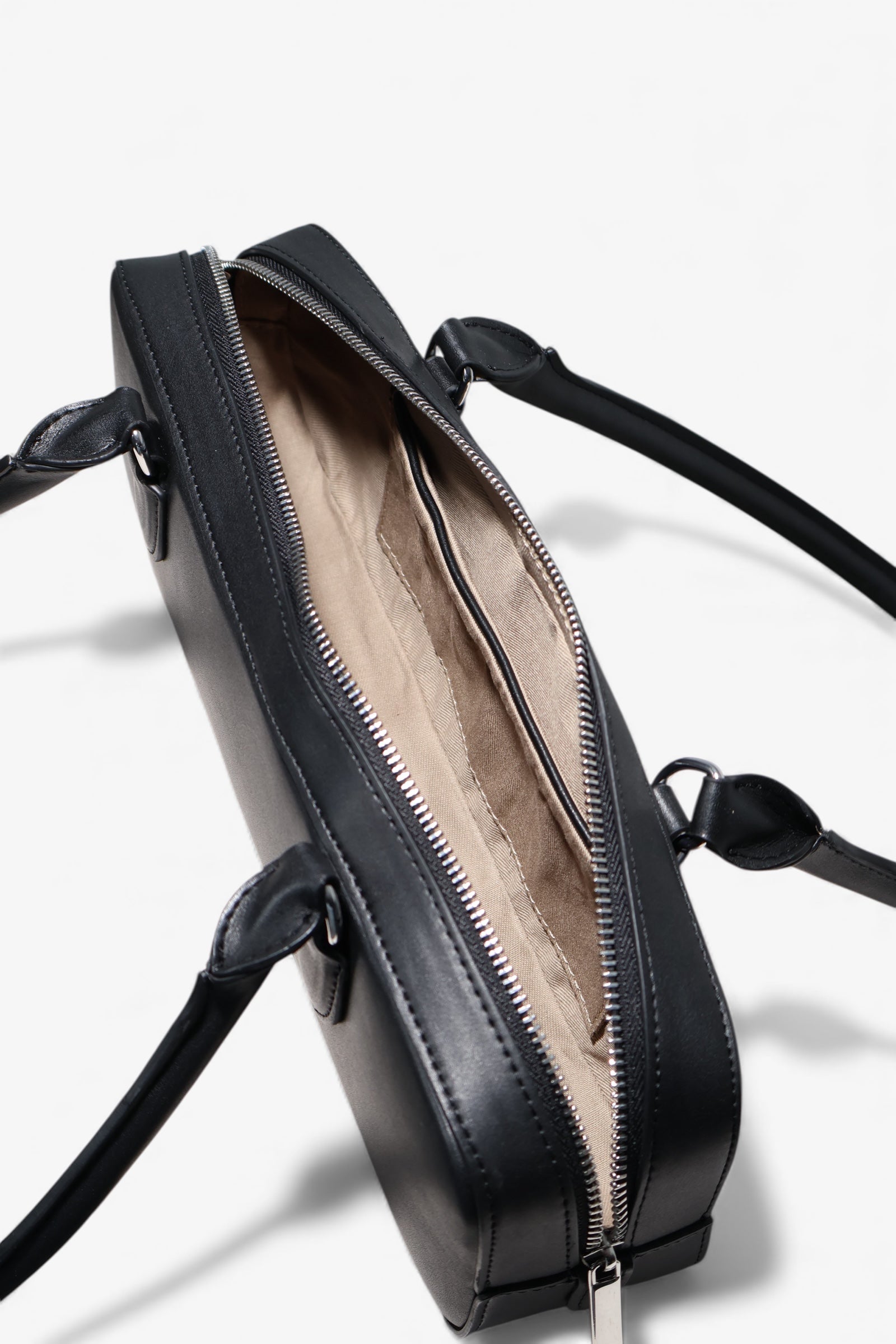 Crafted from certified plant-based vegan leather, it balances soft texture with a structured form.